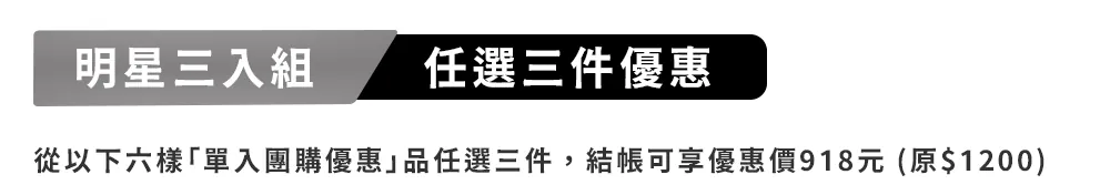 三入優惠價$918 (原價$1200),單入換算$306