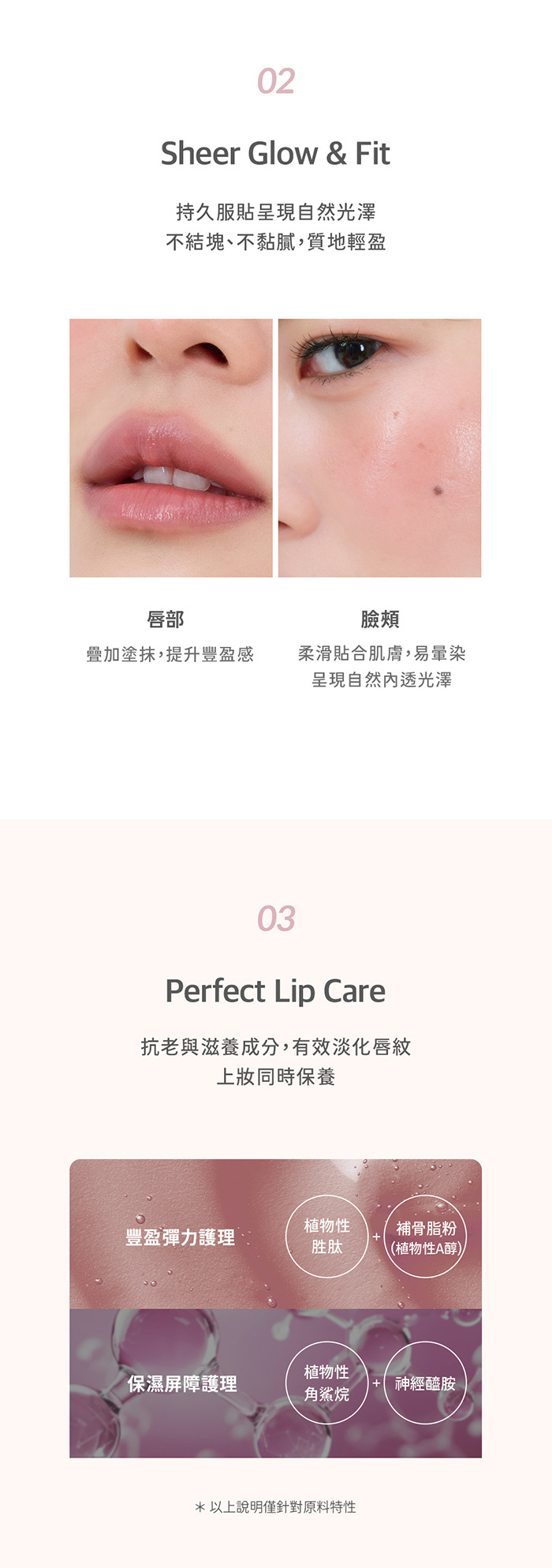 - 色號#00 Clear上唇有微涼舒適感受,不會有刺麻感