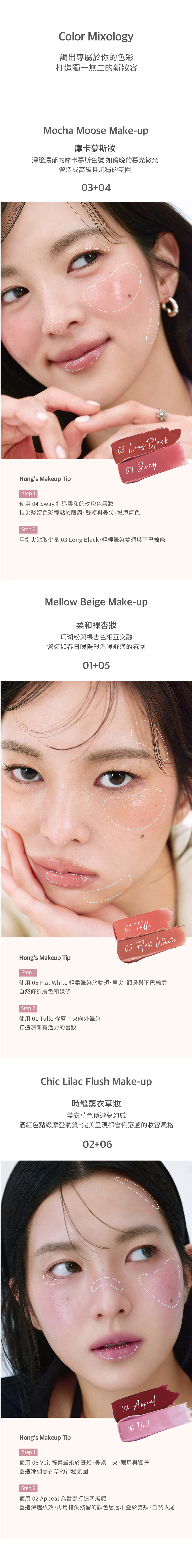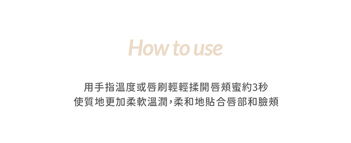 1. 用手指溫度畫圓圈或使用唇刷攪拌唇頰蜜約3秒