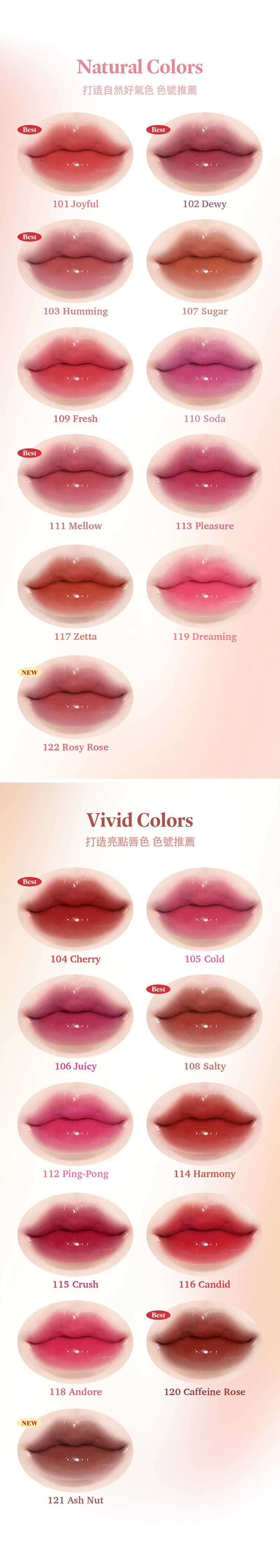 - 不掉色水光唇膏,玻璃光澤不顯唇紋高顯色,打造初戀嘟嘟唇