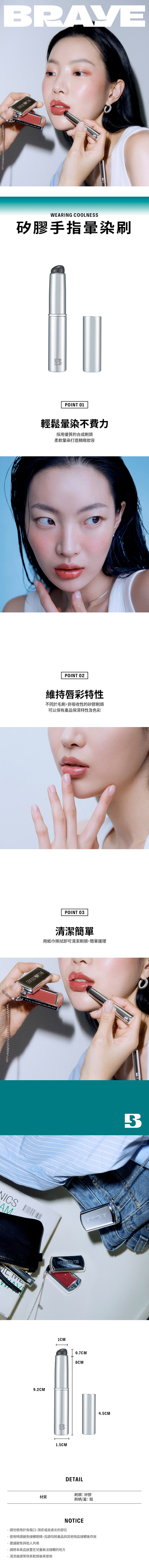 - 非毛刷,矽膠刷頭更能維持唇彩特性