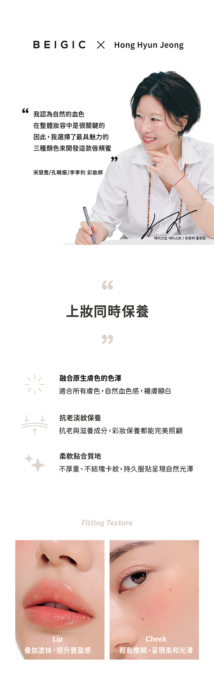 2. 使質地更加柔軟溫潤,可以活化唇頰霜的妝感更顯色、光澤度更鮮明