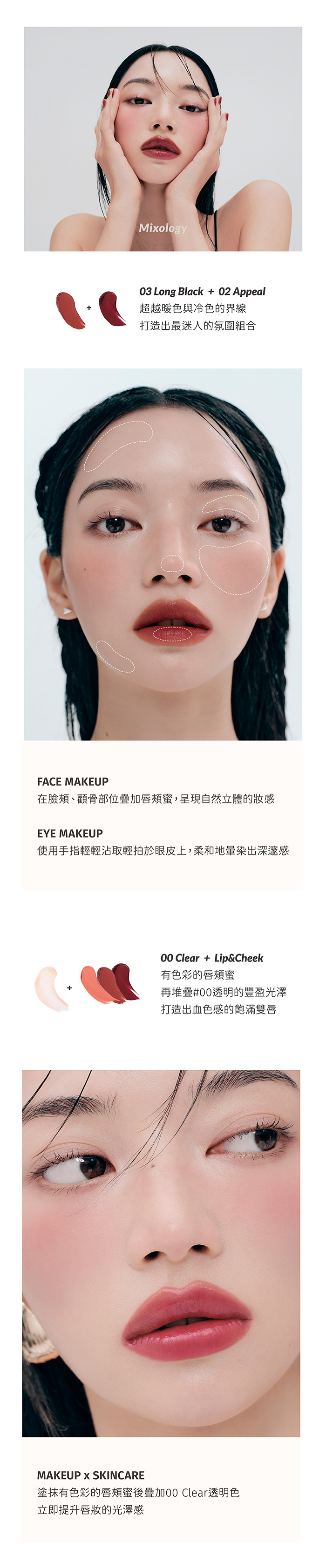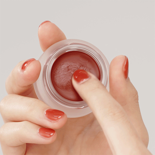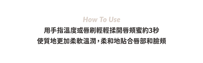 1. 用手指溫度畫圓圈或使用唇刷攪拌唇頰蜜約3秒