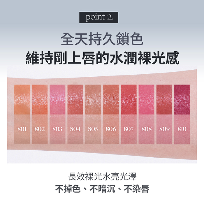完美結合輕盈質地及高飽和光澤,一抹即現飽滿透亮色澤!