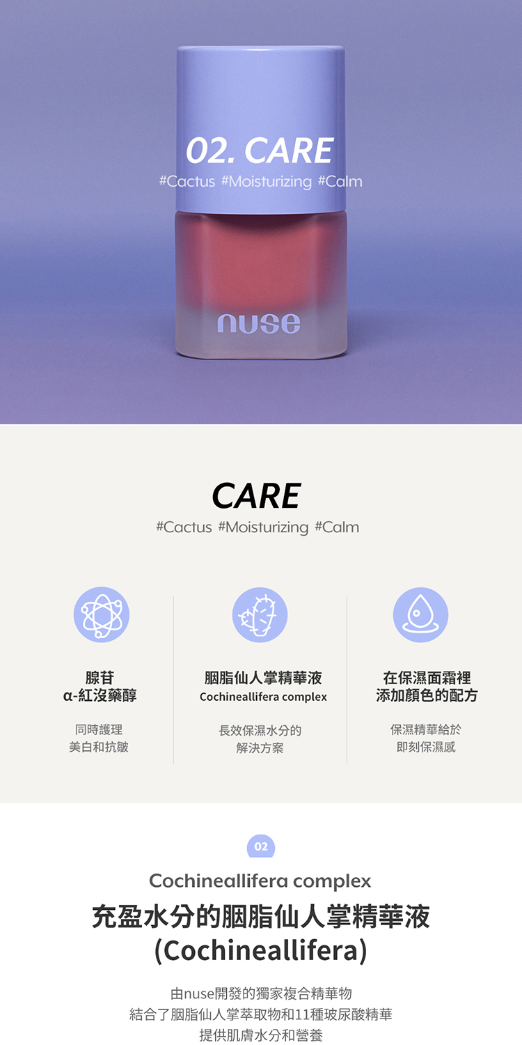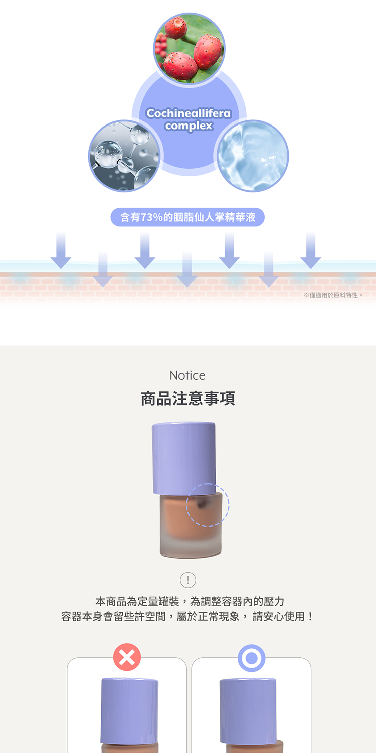 - 添加胭脂仙人掌精華 長效保濕不乾澀