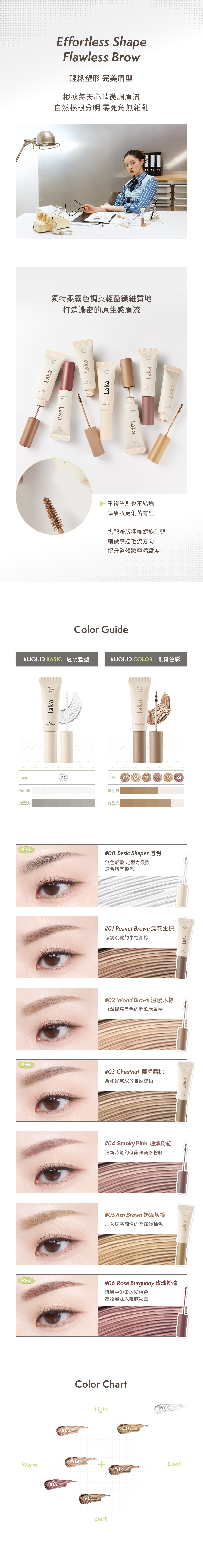 - 6 色選擇,展現多樣個性眉色,色彩細緻,風格百變皆適用