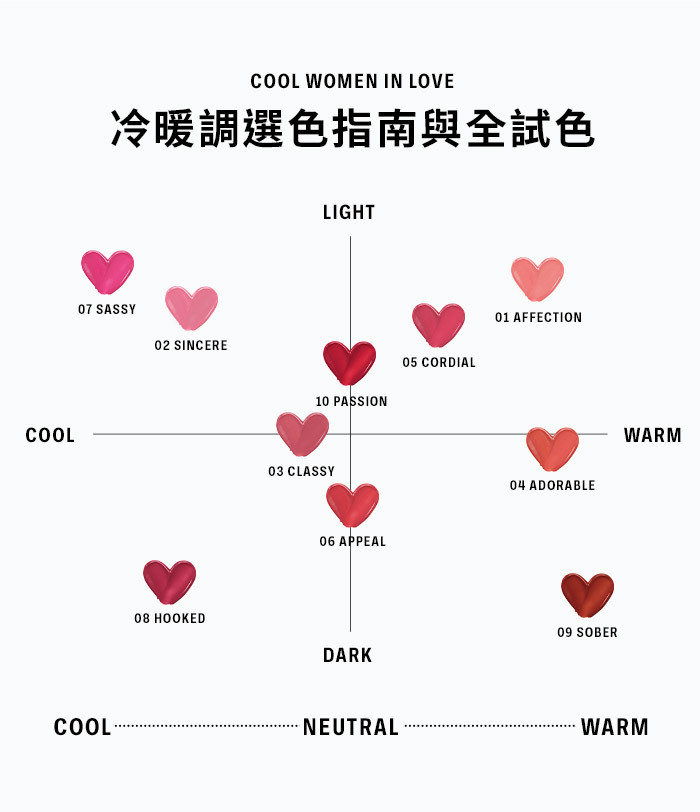 除了延續鋼筆狀的時髦外型,更以不同愛的樣貌為靈感,打造10種樣貌的唇色,不管柔和大膽,一筆完整你的Cool Women’s Scene