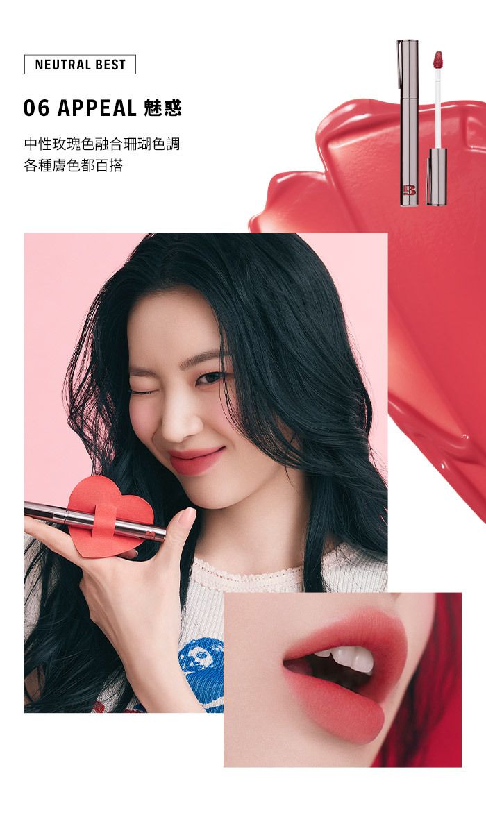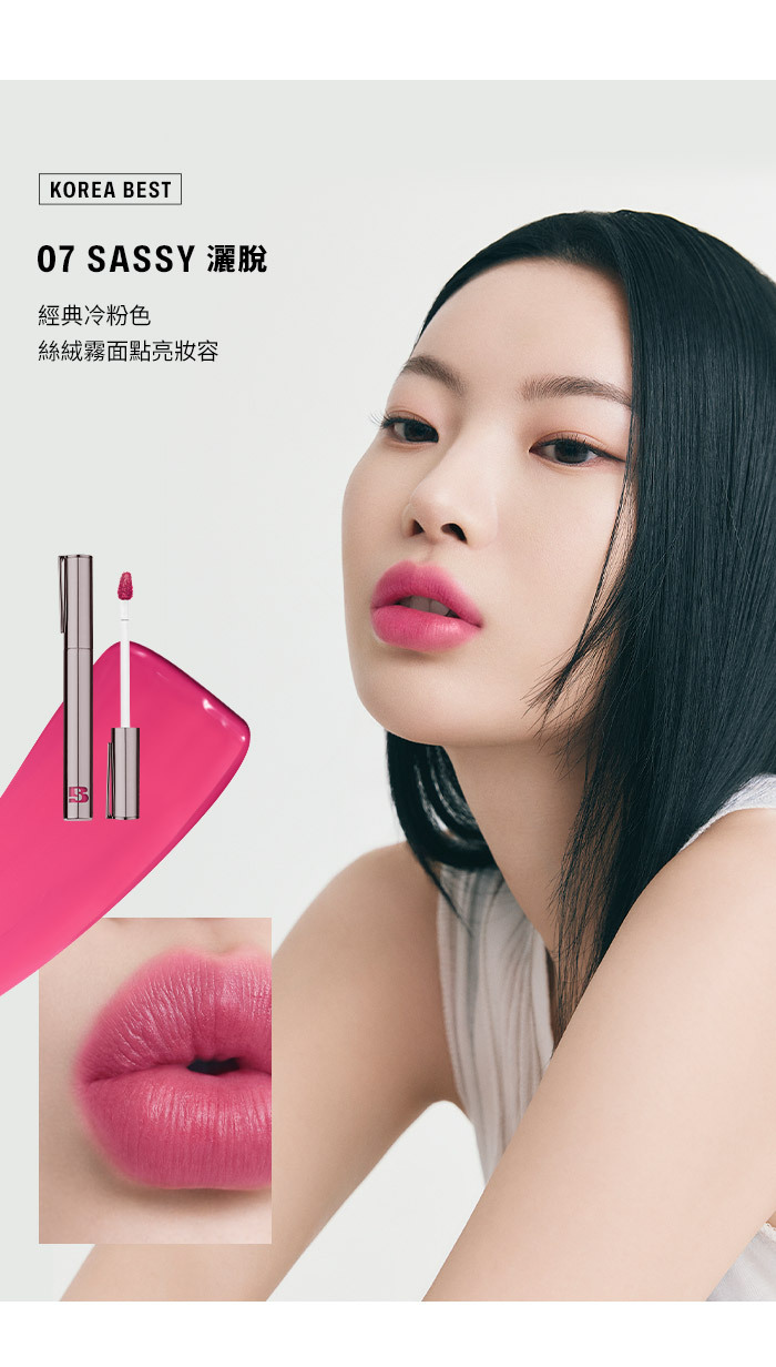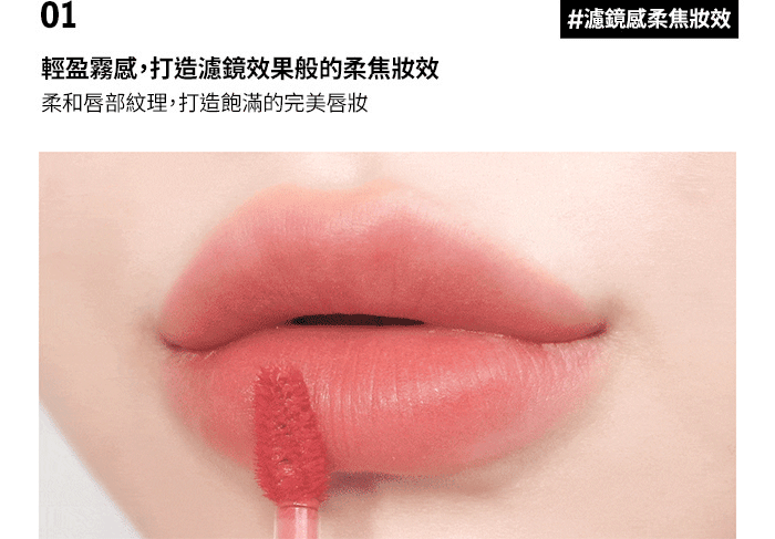 - 濾鏡感柔霧妝效,勾勒飽滿脣形