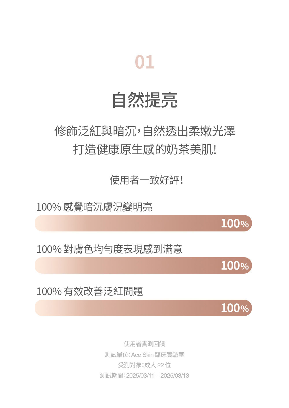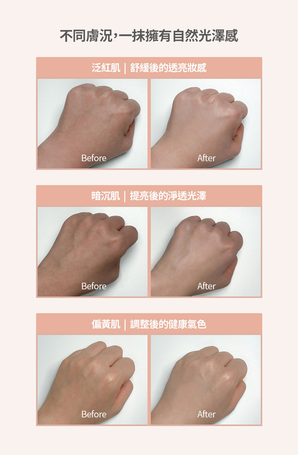 - 自然修飾泛紅與毛孔,提亮暗沉膚色